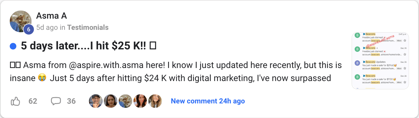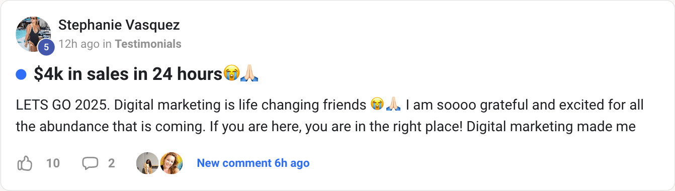 This course actually comes with its own community of 20,000+ people where you can ask questions & network. In addition to that, if you get the course with me, you will be added into my PRIVATE CHANNEL youll receive my personal phone number & an optional group chat with weekly calls! I want to see you become a success story!